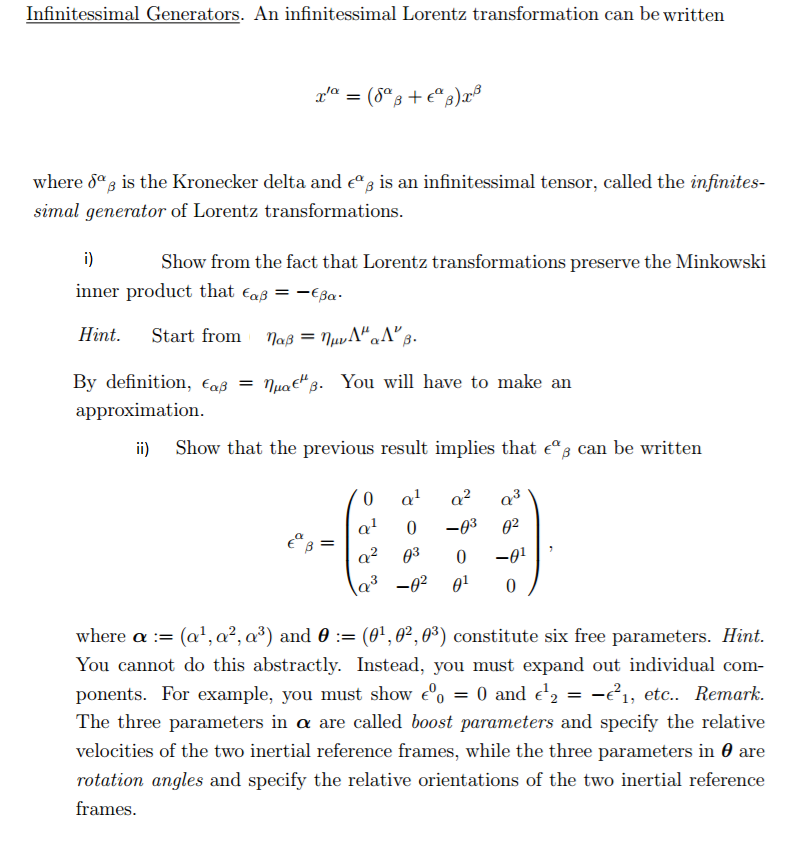 Solved Infinitessimal Generators An Infinitessimal Lorentz Chegg Com